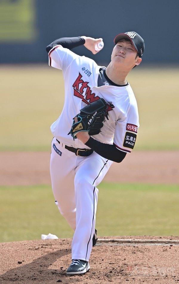 15일 경기도 수원KT위즈파크에서 열린 ‘2022 KBO 리그’ KT 위즈와 두산 베어스의 시범경기에서 선발 투수로 마운드에 오른 KT 배제성이 역투하고 있다.
