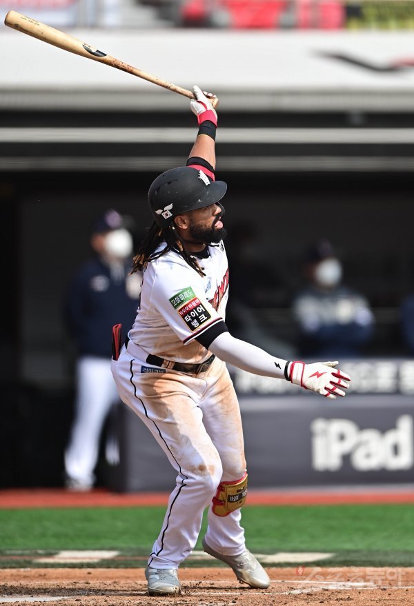 15일 경기도 수원KT위즈파크에서 열린 ‘2022 KBO 리그’ KT 위즈와 두산 베어스의 시범경기에서 3회말 1사 만루 KT 라모스가 좌월 만루 홈런을 날리고 있다.