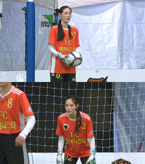 16일 방송될 ‘FC 액셔니스타’와 ‘FC 탑걸’의 경기 예고에서는 골문을 향해 돌진하는 탑걸과 그의 압박에 맞서는 액셔니스타의 고군분투가 비춰졌다. 특히 강력한 슈팅이 오가는 액셔니스타의 골대 앞을 이영진이 지키고 있어 여느 때보다 어려운 승부가 펼쳐졌을 것으로 예측된다.