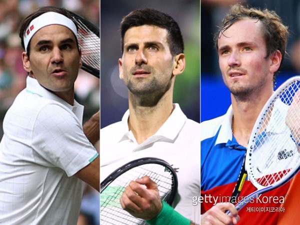 로저 페데러, 노박 조코비치, 다닐 베드베데프(왼쪽부터). 사진=게티이미지코리아