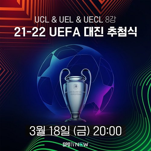 우승 행보에 큰 영향을 미칠 UEFA 8강 대진 추첨식은 내일(18일 금요일) 저녁 8시부터 스포티비 온(SPOTV ON)과 스포티비 나우(SPOTV NOW)에서 생중계된다.