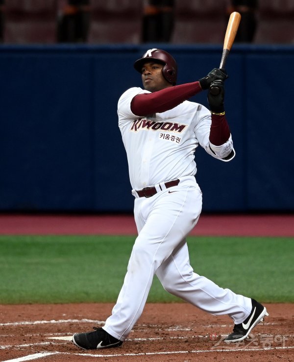 17일 서울 고척스카이돔에서 ‘2022 KBO리그’ 키움 히어로즈와 SSG 랜더스의 경기가 열렸다. 4회말 1사 1, 3루에서 키움 푸이그가 1타점 적시타를 날리고 있다.