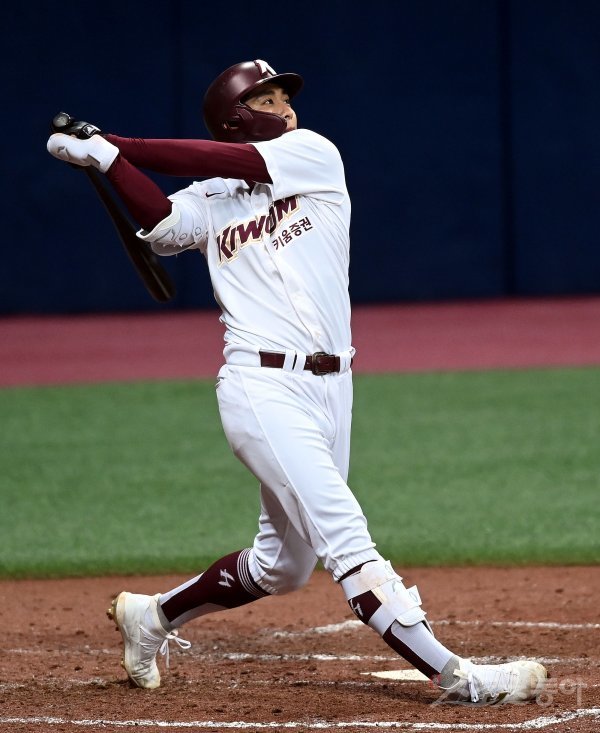 17일 서울 고척스카이돔에서 ‘2022 KBO리그’ 키움 히어로즈와 SSG 랜더스의 경기가 열렸다. 6회말 무사 2루에서 키움 이정후가 1타점 2루타를 날리고 있다.