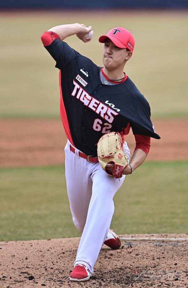 17일 경기도 수원KT위즈파크에서 열린 ‘2022 KBO 리그’ KT 위즈와 KIA 타이거즈의 시범경기에서 5회말 KIA 정해영이 교체로 마운드에 올라 역투하고 있다.
