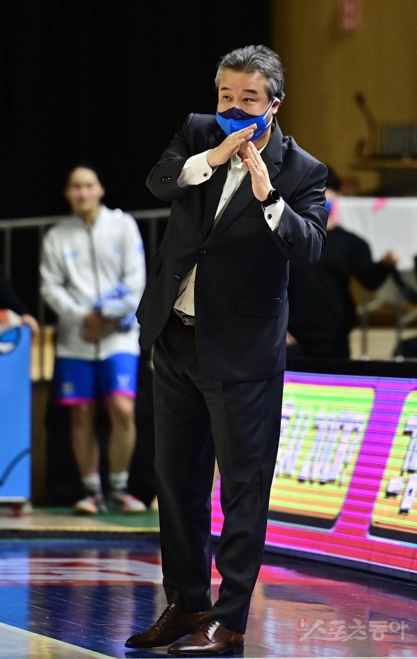17일 경기도 용인실내체육관에서 열린 ‘삼성생명 2021-2022 여자프로농구’ 용인 삼성생명과 부산 BNK 썸의 경기에서 삼성생명 임근배 감독이 작전 타임을 요청하고 있다.