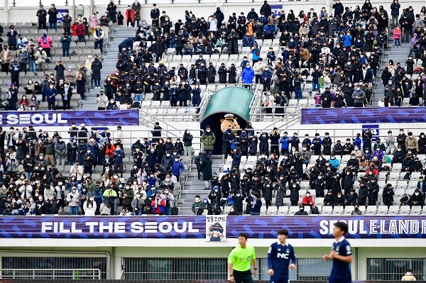 서울 이랜드는 19일 목동종합운동장에서 열린 충남아산FC와 ‘하나원큐 K리그2 2022’ 6라운드 홈경기에서 0-0으로 비겼다. 2015년 창단한 서울 이랜드는 잠실올림픽주경기장을 안방으로 사용해오다 2022시즌부터 목동에 새로 터를 잡았다.