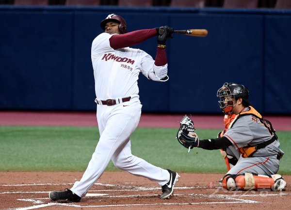 20일 서울 고척스카이돔에서 ‘2022 KBO리그’ 키움 히어로즈와 한화 이글스의 경기가 열렸다. 2회말 무사에서 키움 푸이그가 헛스윙 삼진 아웃을 당하고 있다.