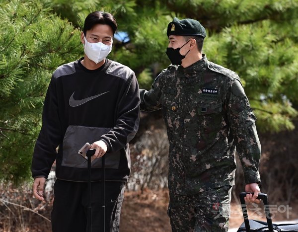 한국축구대표팀이 21일 경기도 파주 축구대표팀트레이닝센터(NFC)에서 ‘2022 FIFA 카타르 월드컵’ 이란, 아랍에미리트(UAE)와 최종 예선에 앞서 소집훈련을 진행했다. 축구대표팀 권경원과 조규성이 입소하고 있다.