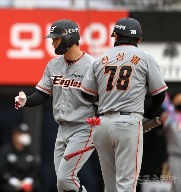 21일 수원KT위즈파크에서 ‘2022 신한은행 MY CAR KBO리그’ 한화 이글스와 KT 위즈의 시범 경기가 열렸다. 6회초 2사 1,2루 한화 이원석이 좌중월 3점 홈런을 날리고 그라운드를 돌아 홈인하고 있다.