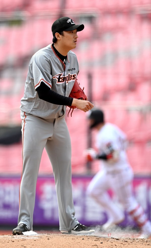 21일 수원KT위즈파크에서 ‘2022 신한은행 MY CAR KBO리그’ 한화 이글스와 KT 위즈의 시범 경기가 열렸다. 3회말 무사 한화 김이환이 KT 박병호에게 좌월 솔로 홈런을 허용하고 있다.