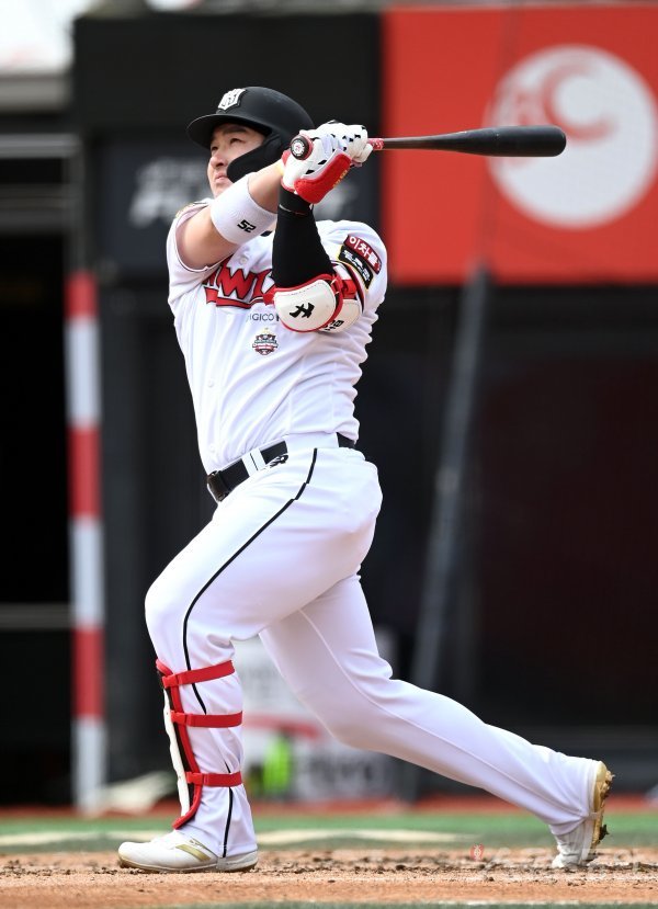 21일 수원KT위즈파크에서 ‘2022 신한은행 MY CAR KBO리그’ 한화 이글스와 KT 위즈의 시범 경기가 열렸다. 3회말 무사 KT 박병호가 좌월 솔로 홈런을 날리고 있다.