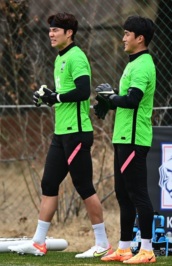 한국축구대표팀이 21일 경기도 파주 축구대표팀트레이닝센터(NFC)에서 ‘2022 FIFA 카타르 월드컵’ 이란, 아랍에미리트(UAE)와 최종 예선에 앞서 소집훈련을 진행했다. 축구대표팀 송범근이 훈련 전 추위에 인상을 쓰고 있다.