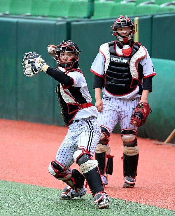 21일 인천 SSG 랜더스필드에서 ‘2022 KBO리그’ SSG 랜더스와 LG 트윈스의 시범경기가 열린다. 경기 전 LG 전준호, 박재욱이 포수 훈련을 하고 있다.