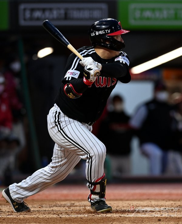 21일 인천 SSG 랜더스필드에서 ‘2022 KBO리그’ SSG 랜더스와 LG 트윈스의 시범경기가 열렸다. 4회초 무사에서 LG 김현수가 안타를 날리고 있다.