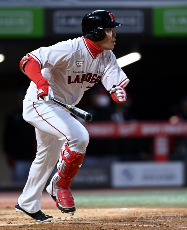 21일 인천 SSG 랜더스필드에서 ‘2022 KBO리그’ SSG 랜더스와 LG 트윈스의 시범경기가 열렸다. 4회말 무사 1, 2루에서 SSG 한유섬이 안타를 날리고 있다.
