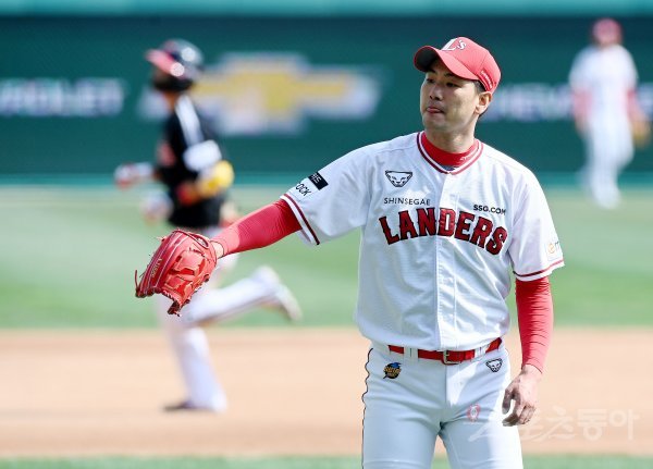 22일 인천 SSG 랜더스필드에서 ‘2022 KBO리그’ SSG 랜더스와 LG 트윈스의 시범경기가 열렸다. 7회초 2사에서 SSG 김광현이 LG 송찬의에게 솔로 홈런을 허용한 뒤 아쉬워하고 있다.