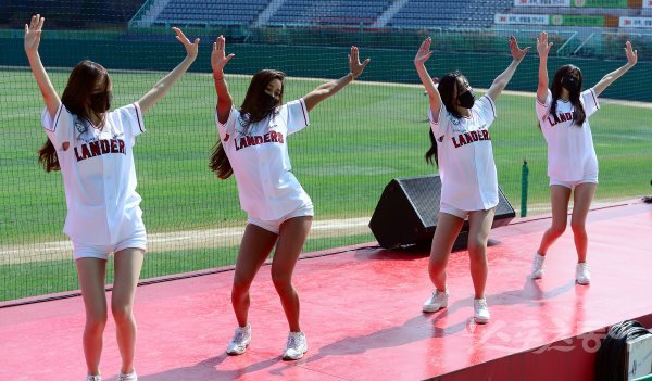 22일 인천 SSG 랜더스필드에서 ‘2022 KBO리그’ SSG 랜더스와 LG 트윈스의 시범경기가 열렸다. SSG 치어리더가 화려한 공연을 선보이고 있다.