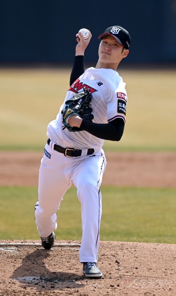 22일 수원KT위즈파크에서 ‘2022 신한은행 MY CAR KBO리그’ 한화 이글스와 KT 위즈의 시범 경기가 열렸다. 선발 투수로 등판한 KT 배제성이 역투하고 있다.