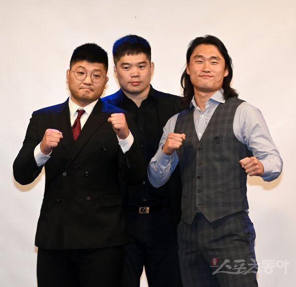 23일 서울 마포구 윤형빈소극장에서 로드FC 격투 오디션 ‘리얼 파이트’ 제작발표회가 열렸다. 굽네 ROAD FC 060 복싱 스페셜 매치를 앞둔 권아솔과 설영호가 대면식을 갖고 있다.