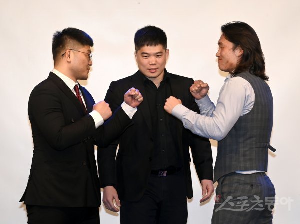 23일 서울 마포구 윤형빈소극장에서 로드FC 격투 오디션 ‘리얼 파이트’ 제작발표회가 열렸다. 굽네 ROAD FC 060 복싱 스페셜 매치를 앞둔 권아솔과 설영호가 대면식을 갖고 있다.
