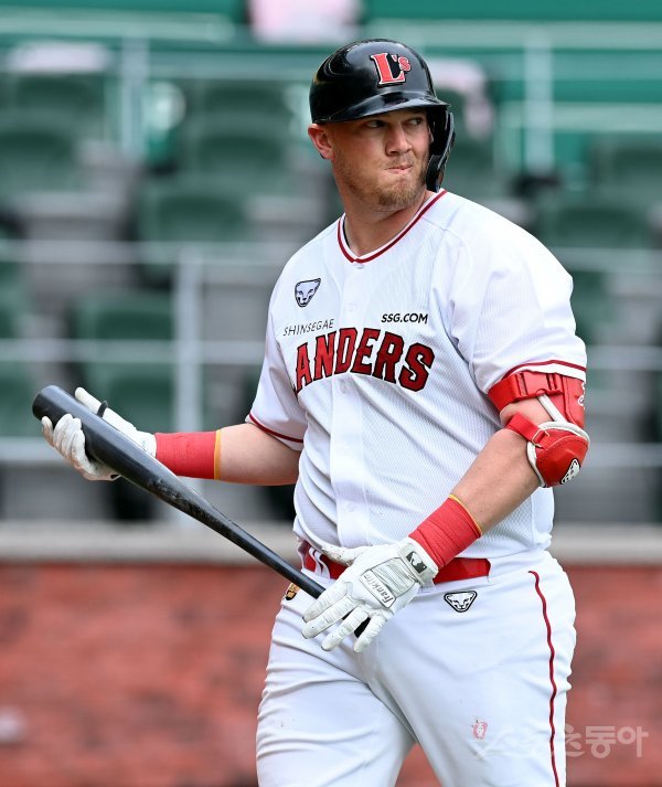 24일 인천 SSG 랜더스필드에서 ‘2022 KBO리그’ SSG 랜더스와 한화 이글스의 시범경기가 열렸다. 7회말 무사 1루에서 SSG 크론이 삼진 아웃으로 물러나고 있다.