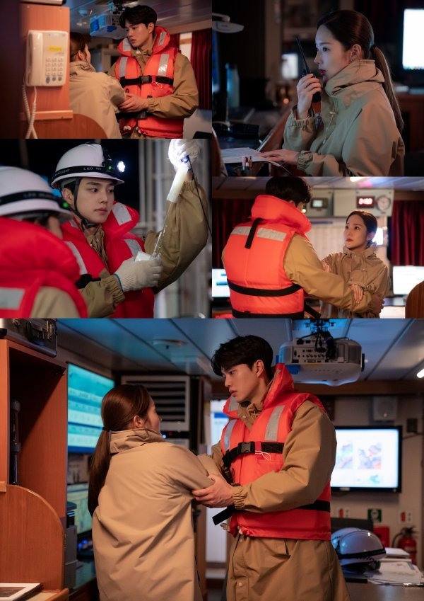 이와 관련 공개된 스틸컷에는 ‘하슈커플’이 총괄과 특보, 그리고 연인 사이에서 아슬아슬한 줄타기를 하고 있는 상황이 담겨 있다. 매섭게 올라오는 태풍의 경로를 더 정확하게 예측하기 위해 바다로 나간 두 사람. 세찬 비바람을 뚫고 존데를 띄우기 위해 총괄 과장 하경과 특보 시우가 고군분투 하고 있다. 험상 궂은 날씨에 긴장을 늦추지 않고 일에 몰두하는 모습이 프로페셔널 그 자체다.