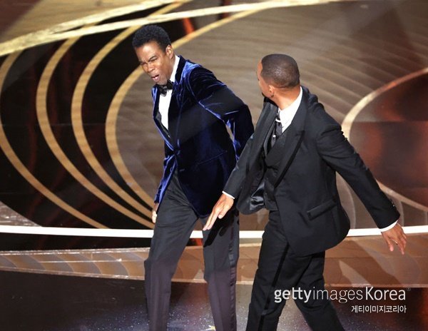 이때 윌 스미스는 무대 위에 올라 크리스 록의 뺨을 내리쳤다. 이후 다시 자신의 자리로 돌아가 “내 아내의 이름을 그 입에 올리지 말라”라고 욕설과 함께 소리쳤다.