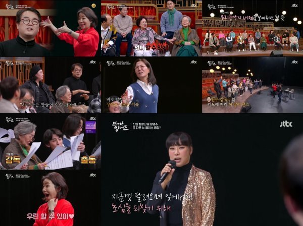 인생이 담긴 자기소개 무대로 큰 감동을 선물했던 ‘뜨씽즈’. ‘디스 이즈 미’는 합창이라는 쉽지 않은 도전에 용기를 낸 시니어들 이야기를 녹일 수 있는 곡이었다. 어려운 곡에 주저하는 맏언니 김영옥에게 용기를 불어넣는 나문희, ‘위대한 쇼맨’ 작품 속 주인공들처럼 춤까지 출 생각이라는 열정의 이병준, 우리들만의 ‘디스 이즈 미’를 보여주면 된다고 걱정하는 단원들을 다독이는 이서환 등 걱정과 설렘이 교차하는 합창 연습이 시작됐다.