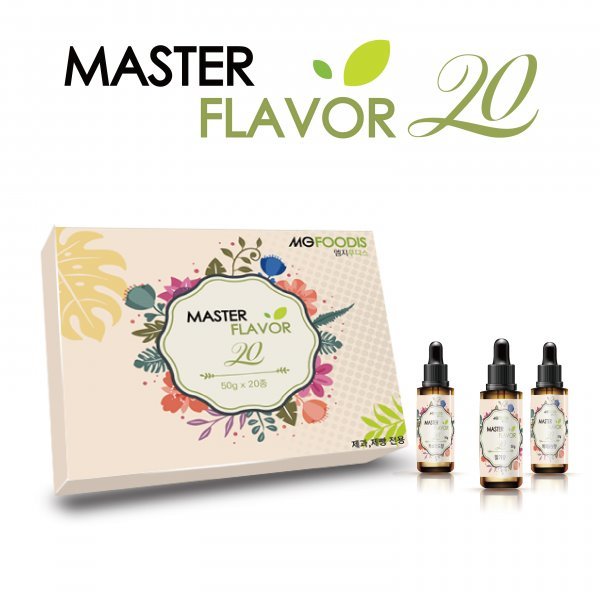 마스터 플래이버 20은 구운마늘향, 티라미슈향, 구운감자향, 커스터드향, 달고나향, 군고구마향, 쿠키향, 헤이즐넛향, 밀크향, 크림향, 치즈향, 모카향, 초콜릿향, 버터향, 호두향, 바닐라향, 유자향, 바나나향, 딸기향, 녹차향으로 구성돼 선보인다. 온라인 쇼핑몰이나 MG푸디스에서 구매할 수 있다.