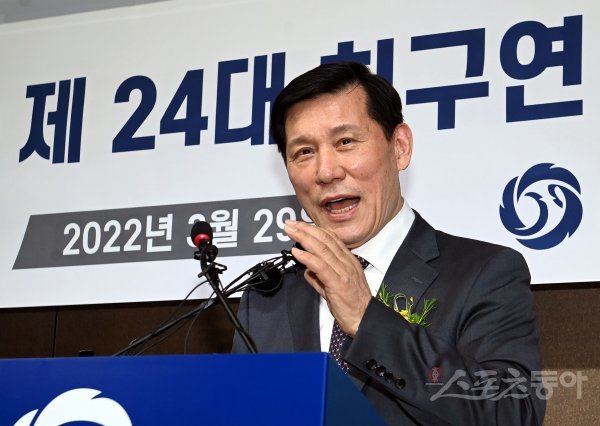 29일 서울 도곡동 KBO 야구회관에서 열린 ‘KBO 제 24대 허구연 총재 취임식’에 참석한 허구연 신임 총재가 취임사를 밝히고 있다.