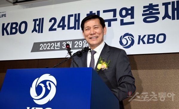 29일 서울 도곡동 KBO 야구회관에서 열린 ‘KBO 제 24대 허구연 총재 취임식’에 참석한 허구연 신임 총재가 취임사를 밝히고 있다.
