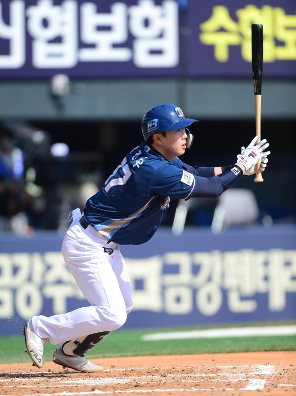 29일 서울 잠실야구장에서 열린 ‘2022 KBO 리그’ 두산 베어스와 NC 다이노스의 시범경기에서 6회초 1사 만루 NC 박건우가 2타점 우전 적시타를 치고 있다.
