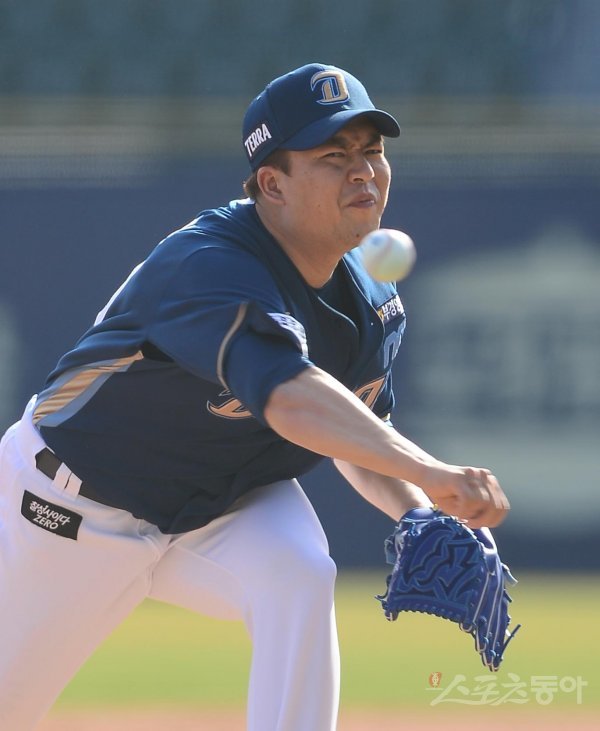 29일 서울 잠실야구장에서 열린 ‘2022 KBO 리그’ 두산 베어스와 NC 다이노스의 시범경기에서 8회말 NC 심창민이 교체로 마운드에 올라 역투하고 있다.
