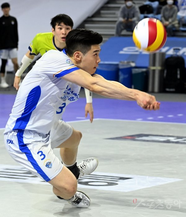 29일 인천 계양체육관에서 ‘2021-2022 도드람 V리그’ 인천 대한항공과 대전 삼성화재의 남자부 경기가 열렸다. 삼성화재 황승빈이 토스를 올리고 있다.