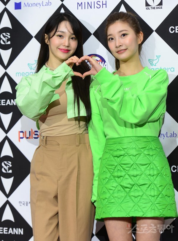 그룹 우아 나나, 민서가 30일 서울 중구 장충동 한국자유총연맹(남산 제이그랜하우스)에서 열린 ‘ILYYLIM: The Show Queen‘ 패션쇼 포토월에서 포즈를 취하고 있다.