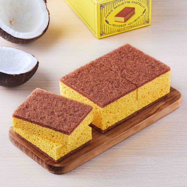 코코넛 껍질과 셀룰로오스 섬유를 사용한 친환경 수세미다. 2030 MZ세대 중심의 펀슈머(Fun+Consumer, 소비를 통해 즐거움을 추구하는 소비자) 트렌드를 반영해 ‘명가명품 카스테라’의 모양과 색감을 그대로 구현했다. 회사 측은 “소장 욕구를 자극하는 디자인과 실용성을 갖춘 이색 굿즈를 지속 선보일 것”이라고 했다.