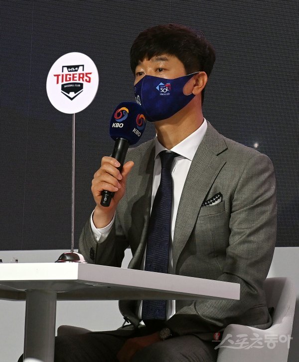 31일 서울 그랜드 하얏트호텔에서 ‘2022 신한은행 SOL KBO리그’ 미디어데이가 열렸다. KIA 김종국 감독이 출사표를 밝히고 있다.