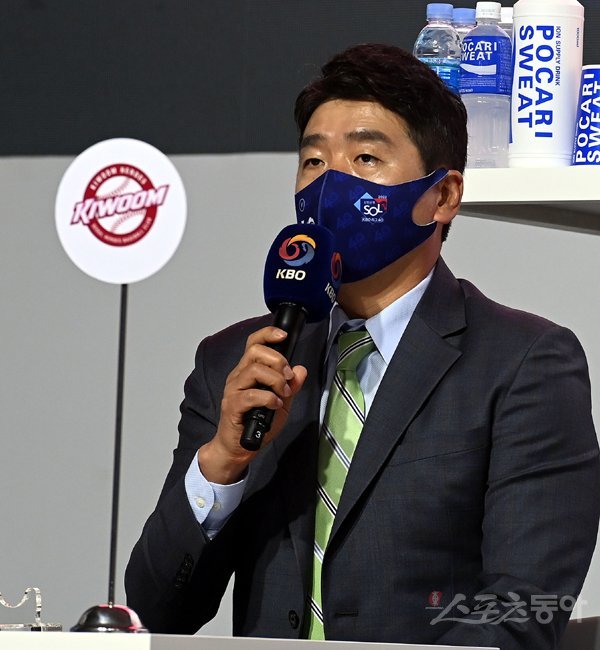 31일 서울 그랜드 하얏트호텔에서 ‘2022 신한은행 SOL KBO리그’ 미디어데이가 열렸다. 키움 홍원기 감독이 출사표를 밝히고 있다.