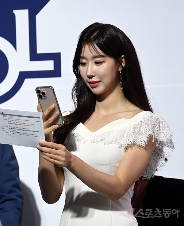 31일 서울 그랜드 하얏트호텔에서 ‘2022 신한은행 SOL KBO리그’ 미디어데이가 열렸다. 사회를 맡은 진달래 아나운서가 행사를 준비하고 있다.