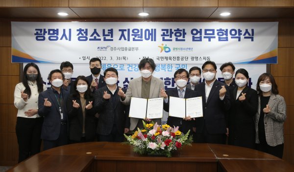 국민체육진흥공단(이사장 조현재) 경주사업총괄본부는 3월31일 광명스피돔에서 광명시청소년재단과 재단 소속 청소년센터 7개 기관과 광명지역 청소년 지원에 관한 다자간 업무협약을 맺었다.-“광명스피돔 시설 무상제공, 청소년활동 지원”