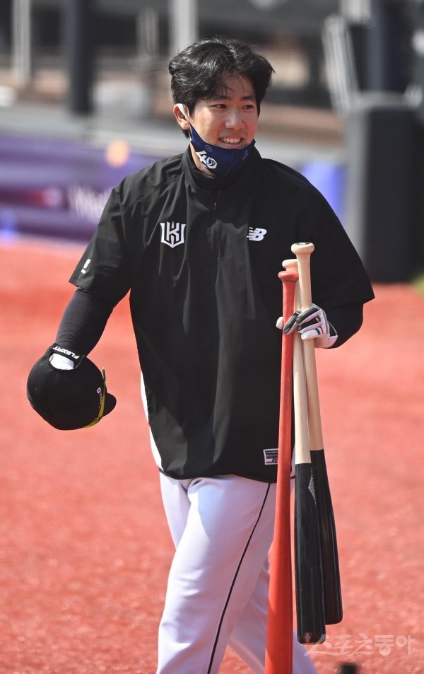 3일 경기도 수원KT위즈파크에서 열린 ‘2022 신한은행 SOL KBO리그’ KT 위즈와 삼성 라이온즈의 경기에 앞서 KT 오윤석이 배트를 들고 그라운드로 들어서고 있다.