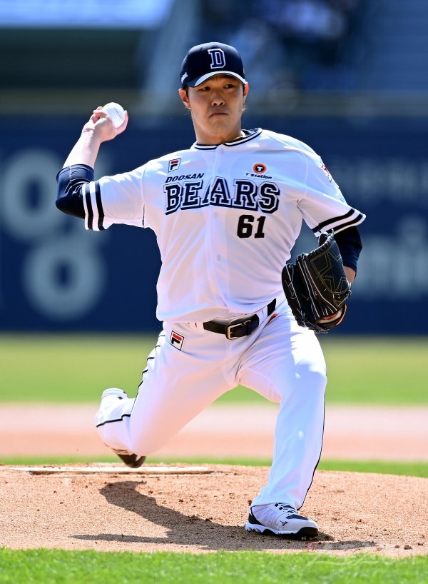 3일 서울 잠실야구장에서 ‘2022 신한은행 SOL KBO리그’ 두산 베어스와 한화 이글스의 경기가 열렸다. 두산 선발투수 최원준이 힘차게 볼을 던지고 있다.