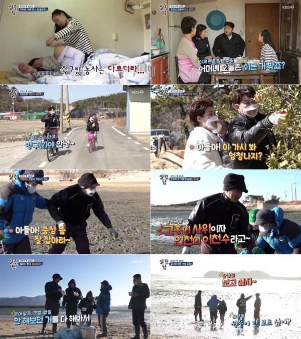갯벌에서 중심을 잃고 넘어져 체면을 구긴 이천수는 처음에는 허둥대며 제대로 일을 못했지만 장모로부터 노하우를 배운 후로는 끊임없이 바지락과 굴을 채취했고 표정도 밝아졌다. 이후 새참으로 문어 팥죽을 먹은 이천수는 “힘들긴 했는데 재미있었어요”라며 서둘러 일을 끝내려 했다.