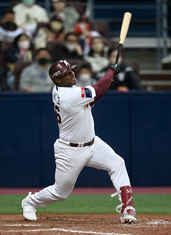 3일 서울 고척스카이돔에서 ‘2022 신한은행 MY CAR KBO리그’ 롯데 자이언츠와 키움 히어로즈의 경기가 열렸다. 연장 10회말 1사 키움 푸이그가 우전 2루타를 치고 있다.