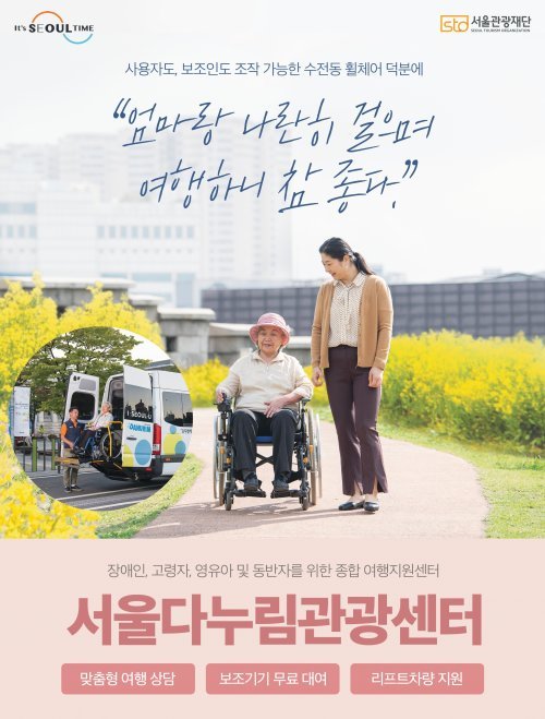 이경재 서울관광재단 시민관광팀장은 “관광약자도 여행할 수 있는 환경 조성이 중요하며 차량지원 등 관광약자 이동 지원 서비스는 ‘모두를 위한 관광’의 핵심 요소다. 이용자 수요에 맞는 다양한 코스를 선보여 여행에 제약 없이 만족스러운 서비스를 제공하겠다”고 밝혔다.