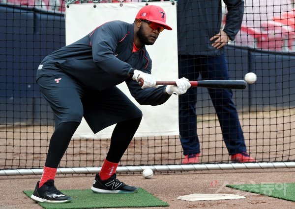 5일 광주기아챔피언스필드에서 ‘2022 신한은행 SOL KBO리그’ KIA 타이거즈와 한화 이글스의 경기가 열린다. 경기에 앞서 KIA 소크라테스가 번트 훈련을 하고 있다.