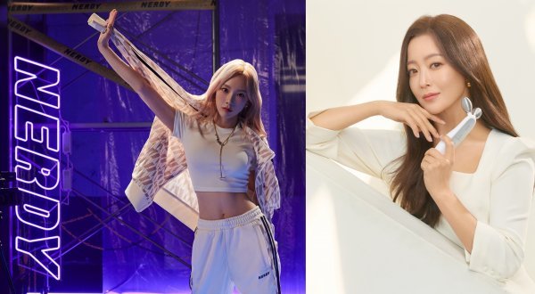 에이피알이 패션 브랜드 널디, 뷰티 브랜드 메디큐브의 성장과 함께 글로벌 역량 강화와 기업공개(IPO)를 추진한다. 널디 모델 태연(왼쪽)과 뷰티 디바이스 ‘메디큐브 에이지알’을 소개하고 있는 모델 김희선. 사진제공|에이피알