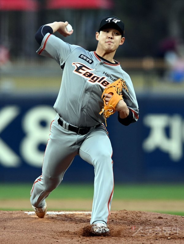 5일 광주기아챔피언스필드에서 ‘2022 신한은행 SOL KBO리그’ KIA 타이거즈와 한화 이글스의 경기가 열렸다. 한화 선발투수 윤대경이 힘차게 볼을 던지고 있다.