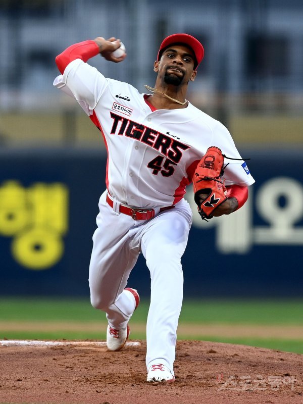 5일 광주기아챔피언스필드에서 ‘2022 신한은행 SOL KBO리그’ KIA 타이거즈와 한화 이글스의 경기가 열렸다. KIA 선발투수 로니가 힘차게 볼을 던지고 있다.