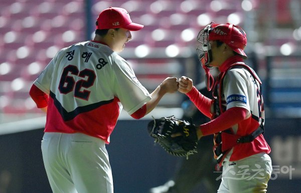 5일 광주기아챔피언스필드에서 ‘2022 신한은행 SOL KBO리그’ KIA 타이거즈와 한화 이글스의 경기가 열렸다. KIA가 한화를 상대로 4-3으로 승리한 뒤 정해영과 김민식이 기쁨을 나누고 있다.